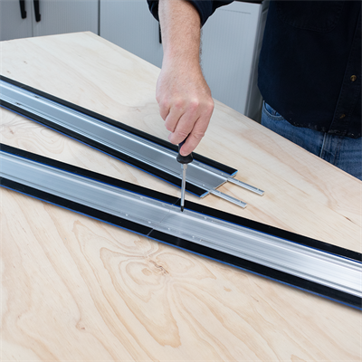 No clamps needed thanks to anti-slip guide strips that keep the track in place through the entire cut